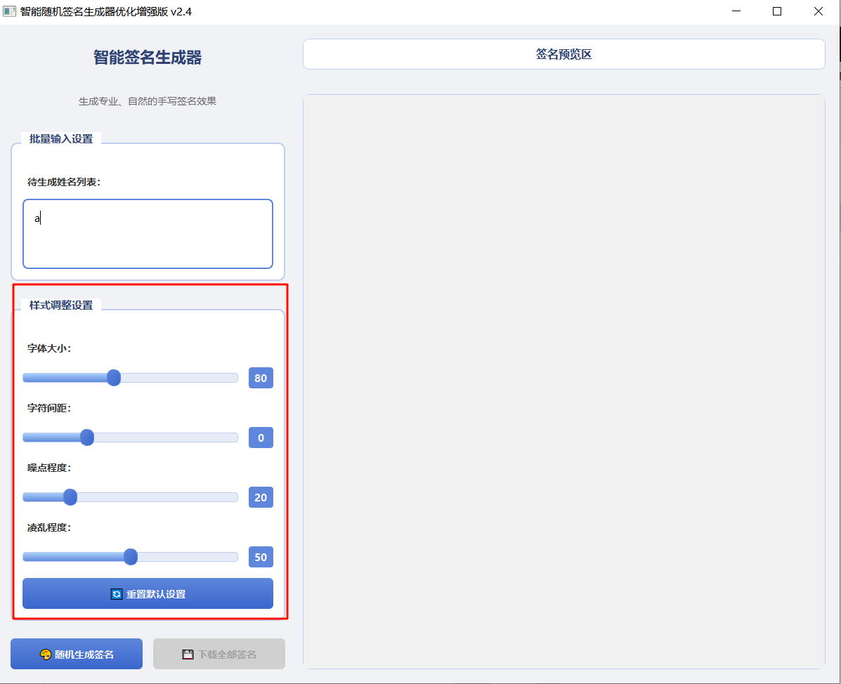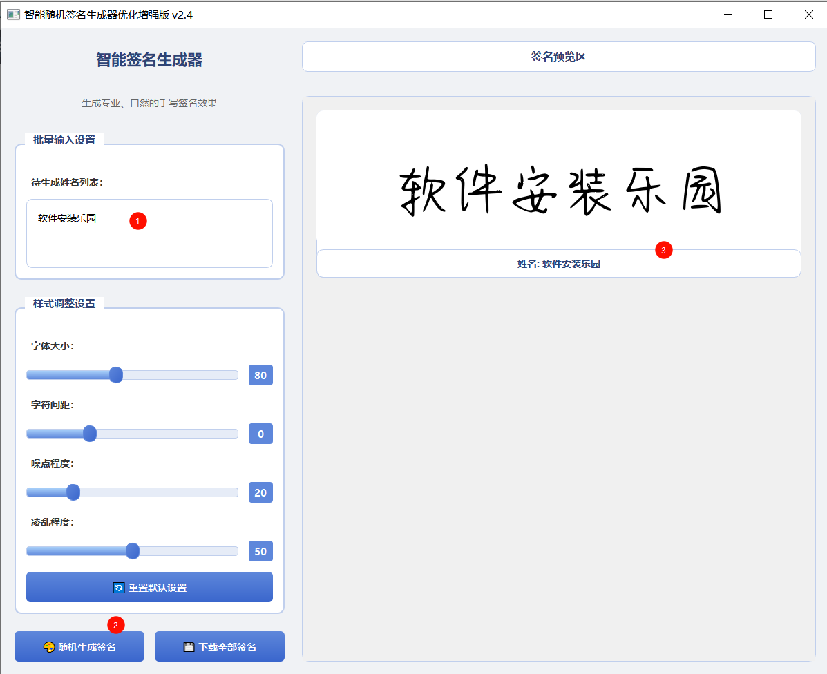 3、双击【智能随机签名生成器优化增强版 v2.4.exe】,打开软件;