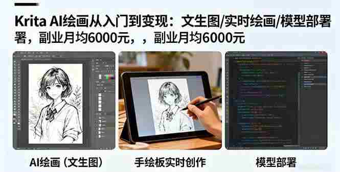 幸福网赚_逆风翻盘必备! » (16222期)Krita AI绘画从入门到变现:文生图/实时绘画/模型部署,副业月均6000元
