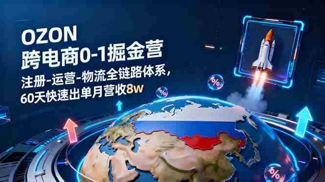 (16277期)OZON跨境电商0-1掘金营:注册-运营-物流全链路体系,60天快速出单月营收8w