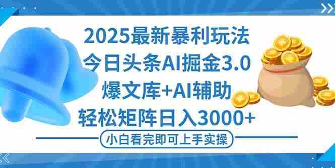 (16308期)2025年今日头条最新暴利玩法3.0,一键生成爆款,轻松实现矩阵日入3000+