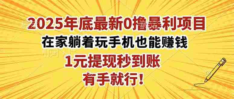 (16419期)2025年底最新0撸暴利项目,在家也能躺赚,1元秒提现,有手就行!