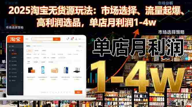 (16445期)2025淘宝无货源玩法:市场选择、流量起爆、高利润选品,单店月利润1-4w