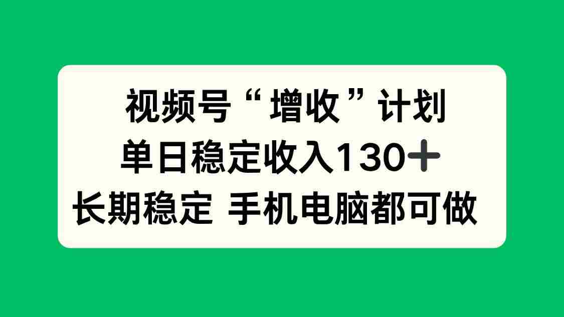 (16579期)视频号“增收”计划,单日稳定收入130十,长期稳定 手机电脑都可做!