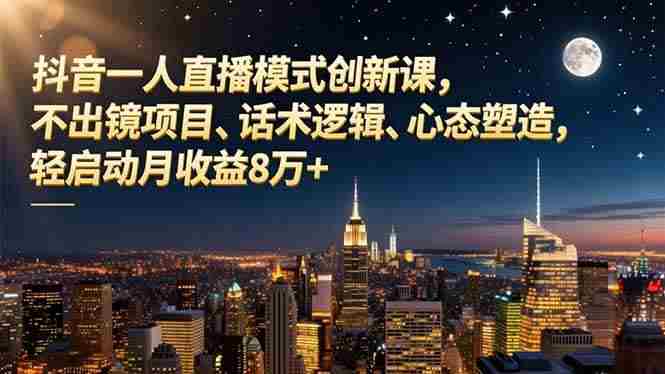 (16750期)抖音一人直播模式创新课,不出镜项目、话术逻辑、心态塑造,轻启动月收益8万+