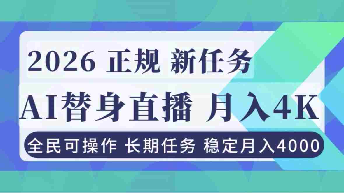(16800期)AI《替身》直播,稳定月入4000不违规,正规项目 小白可做