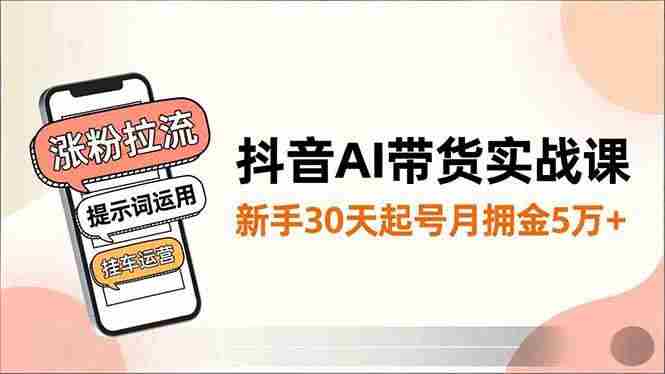 幸福网赚_逆风翻盘必备! » (16759期)抖音AI带货实战课,涨粉拉流、提示词运用、挂车运营,新手30天起号月佣金5万+
