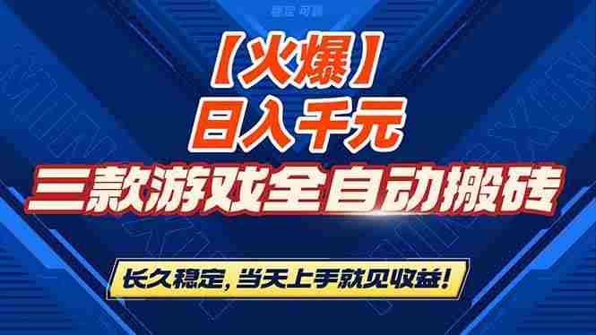 (16870期)【火爆】三款游戏全自动搬砖,日入 1000+,长久稳定,当天上手就见收益!
