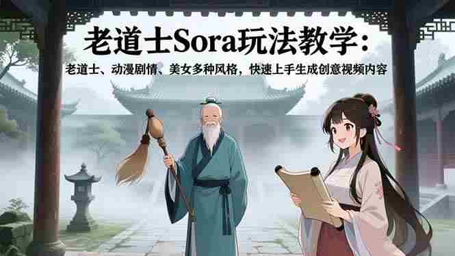 幸福网赚_逆风翻盘必备! » (16862期)老道士Sora玩法教学:老道士、动漫剧情、美女多种风格,快速上手生成创意视频内容