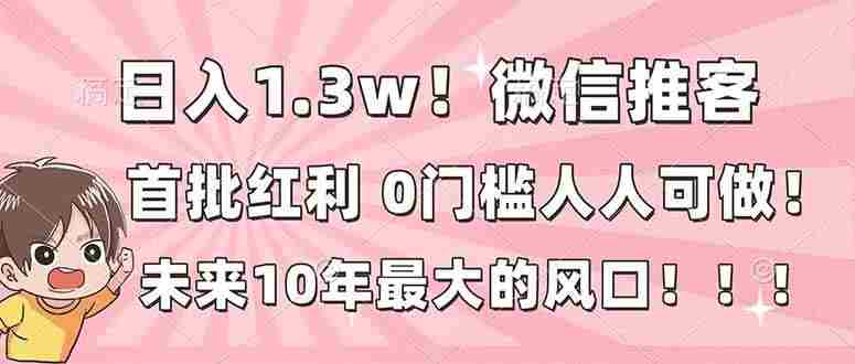 (16969期)日入1.3w!微信推客,首批红利,未来10年最大的风口,0门槛,人人可做!
