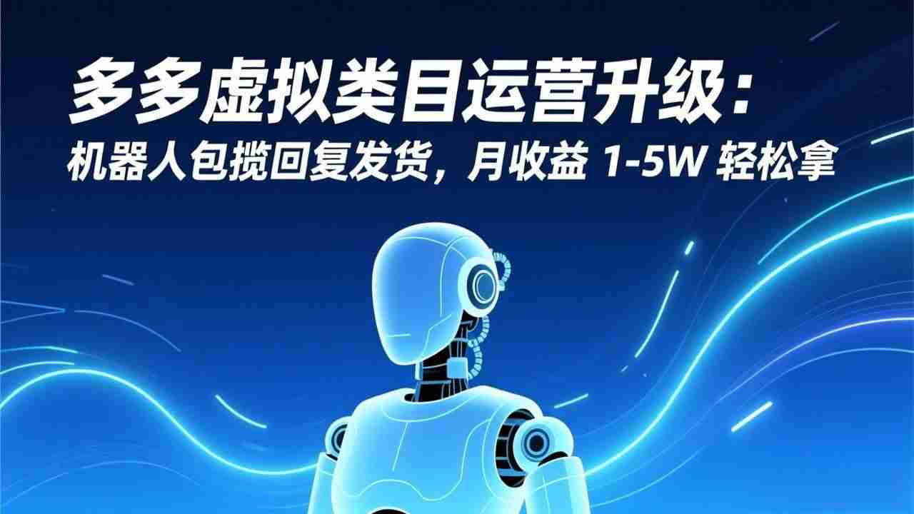 (17082期)多多虚拟类目运营升级:机器人包揽回复发货,月收益 1-5W 轻松拿