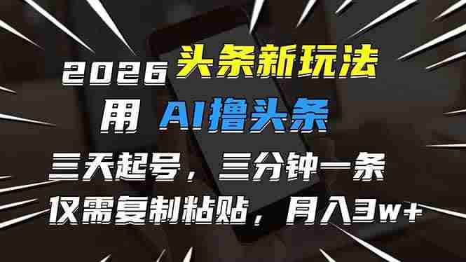 (17044期)2026最新头条玩法,用AI撸头条,3天必起号,3分钟1条,只需要复制粘贴,简单月入3W+