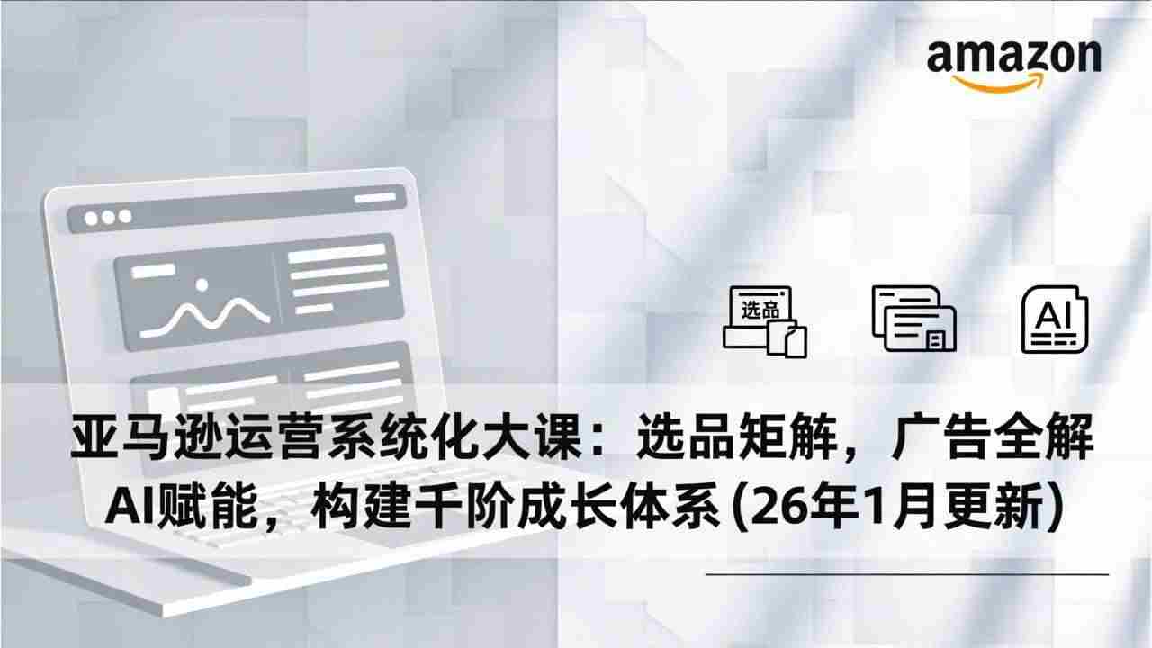 (17103期)亚马逊运营系统化大课:选品矩阵,广告全解,AI赋能,构建千阶成长体系(26年1月更新)