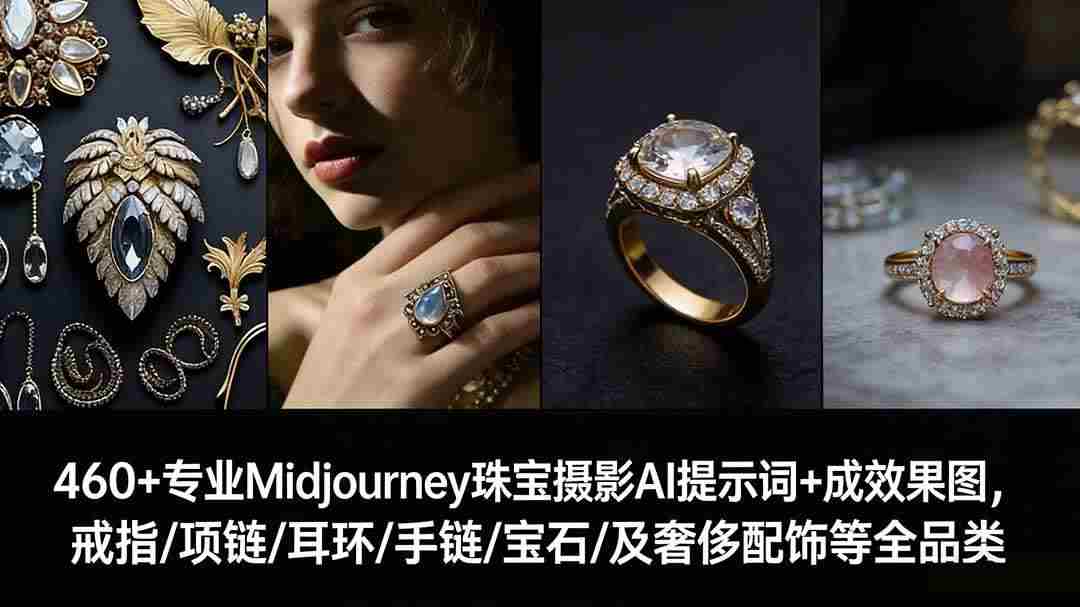 幸福网赚_逆风翻盘必备! » (17272期)460+专业Midjourney珠宝摄影AI提示词+成效果图,戒指/项链/耳环/手链/宝石/及奢侈配饰等全品类