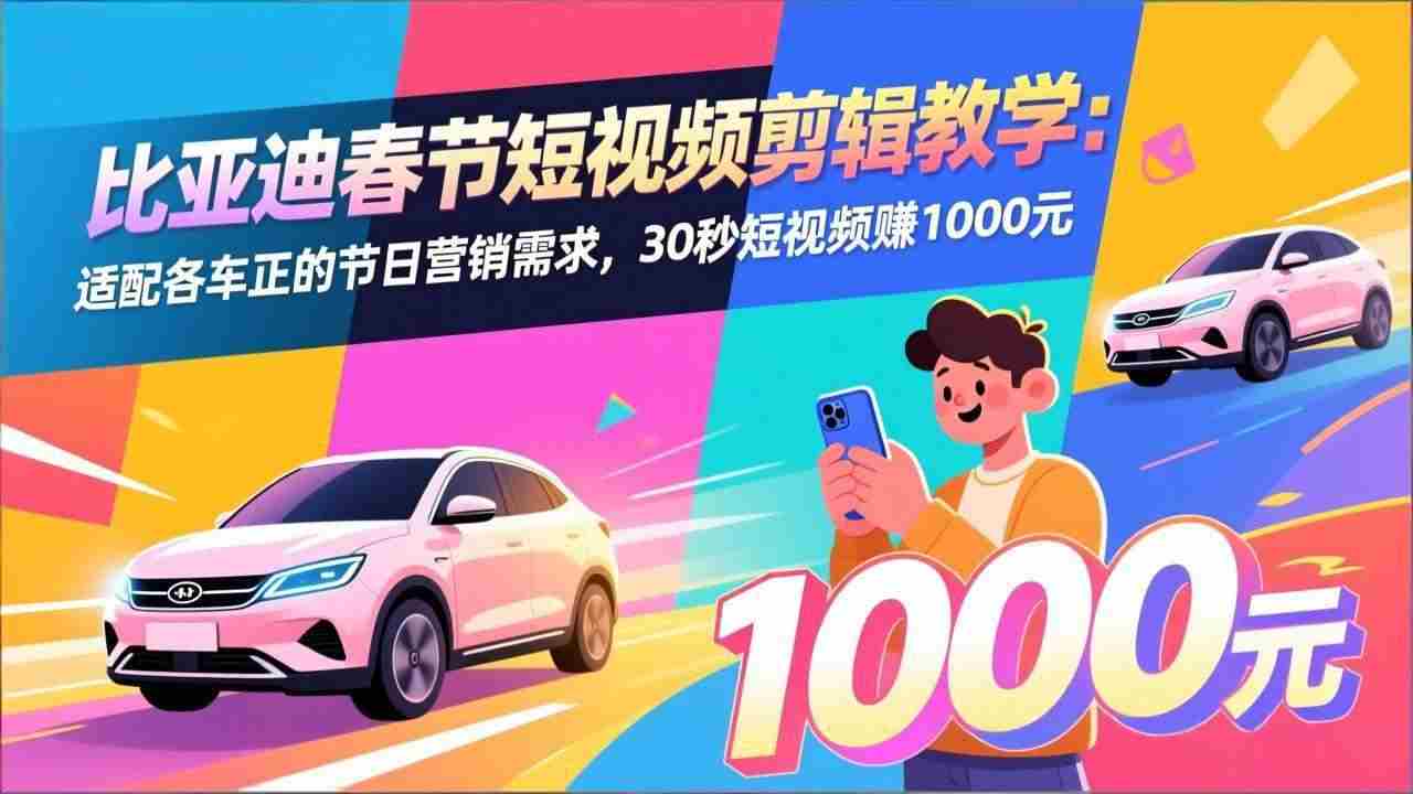 幸福网赚_逆风翻盘必备! » (17320期)比亚迪春节短视频剪辑教学:适配各车企的节日营销需求,30秒短视频赚1000元