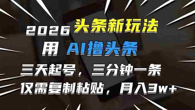 (17351期)2026最新头条玩法,用AI撸头条,3天必起号,3分钟1条,只需要复制粘贴,简单月入3W+