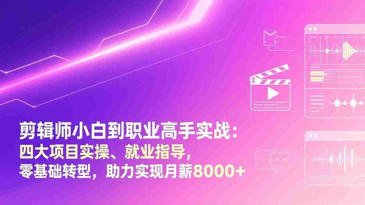 幸福网赚_逆风翻盘必备! » (17360期)剪辑师小白到职业高手实战:四大项目实操、就业指导,零基础转型,助力实现月薪8000+
