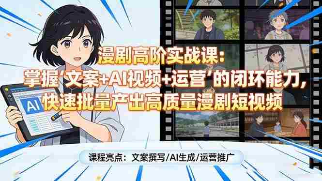 幸福网赚_逆风翻盘必备! » (17461期)漫剧高阶实战课:掌握“文案+AI视频+运营”的闭环能力,快速批量产出高质量漫剧短视频