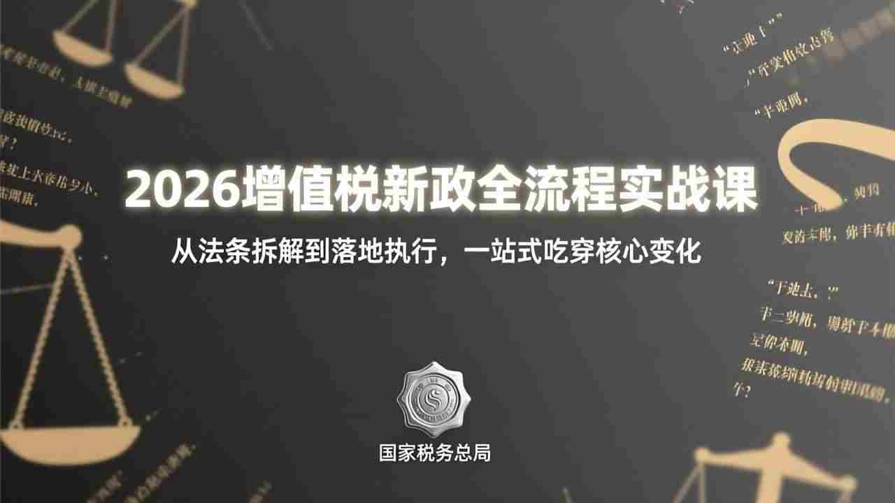 幸福网赚_逆风翻盘必备! » (17529期)2026增值税新政全流程实战课:从法条拆解到落地执行,一站式吃透核心变化