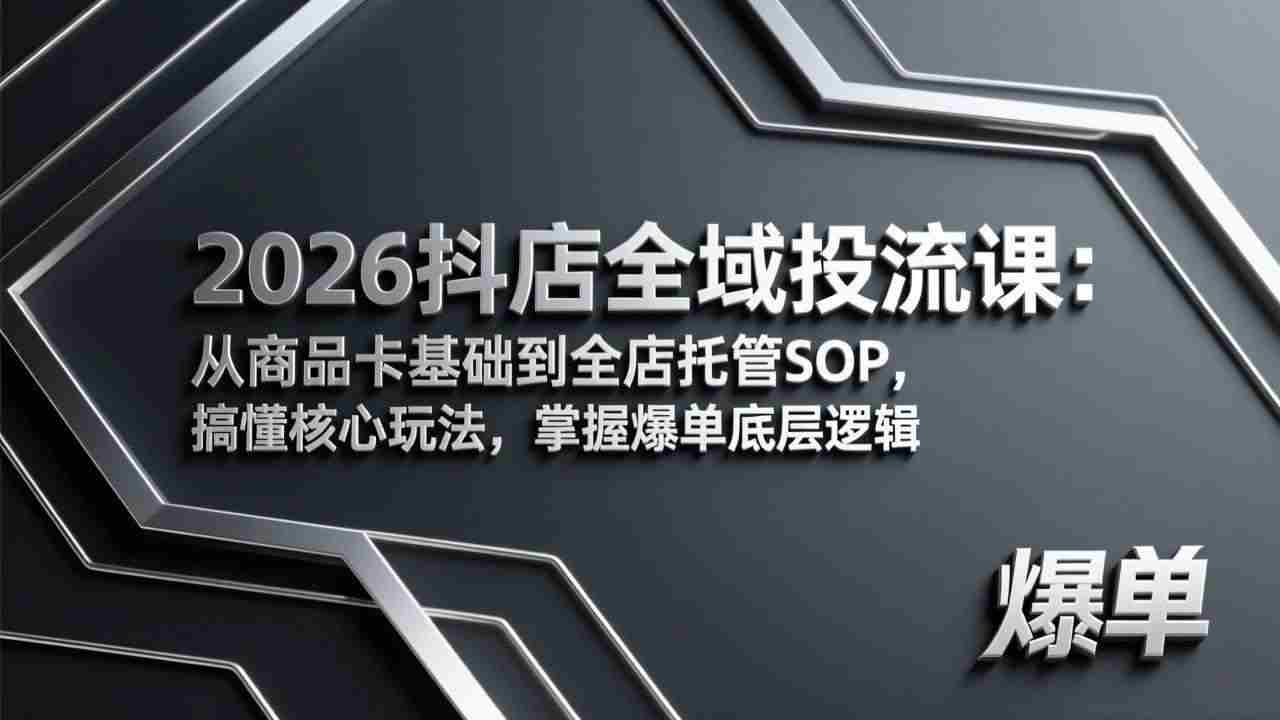 (17569期)2026抖店全域投流课:从商品卡基础到全店托管SOP,搞懂核心玩法,掌握爆单底层逻辑