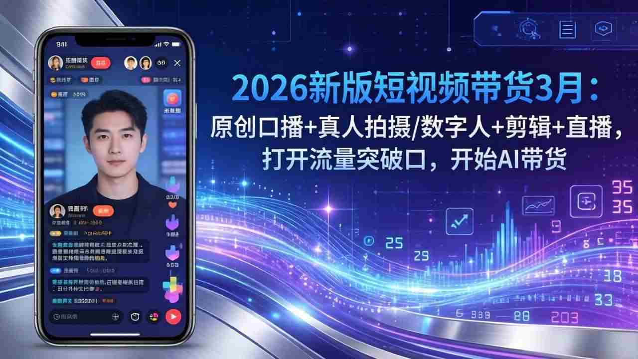 幸福网赚_逆风翻盘必备! » (17724期)2026新版短视频带货3月:原创口播+真人拍摄/数字人+剪辑+直播,打开流量突破口,开始AI带货