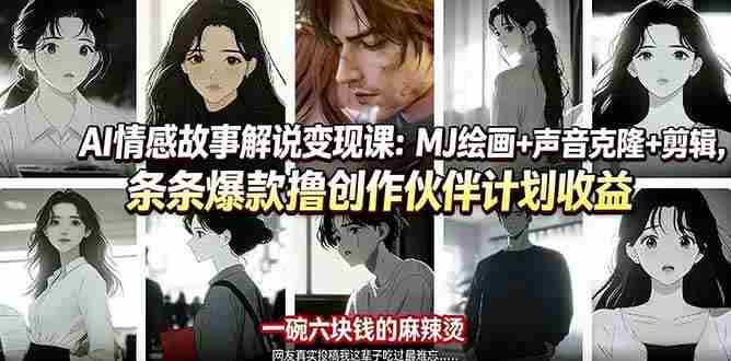 (17821期)AI情感故事解说变现课:MJ绘画+声音克隆+剪辑,条条爆款撸创作伙伴计划收益