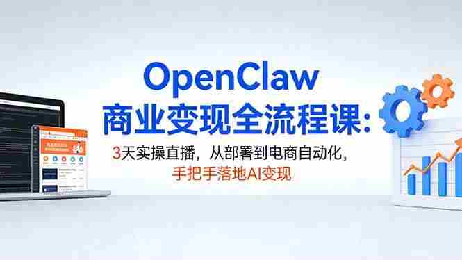 (17786期)OpenClaw商业变现全流程课:3天实操直播,从部署到电商自动化,手把手落地AI变现