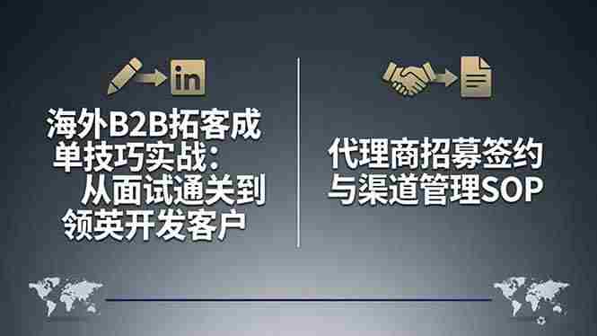 (17985期)海外B2B拓客成单技巧实战:从面试通关到领英开发客户,代理商招募签约与渠道管理SOP