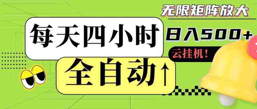 (18052期)全自动挂机每天四小时日入500+ 可批量操作 时间自由:24小时后台挂机,不耽误主业,长期稳定