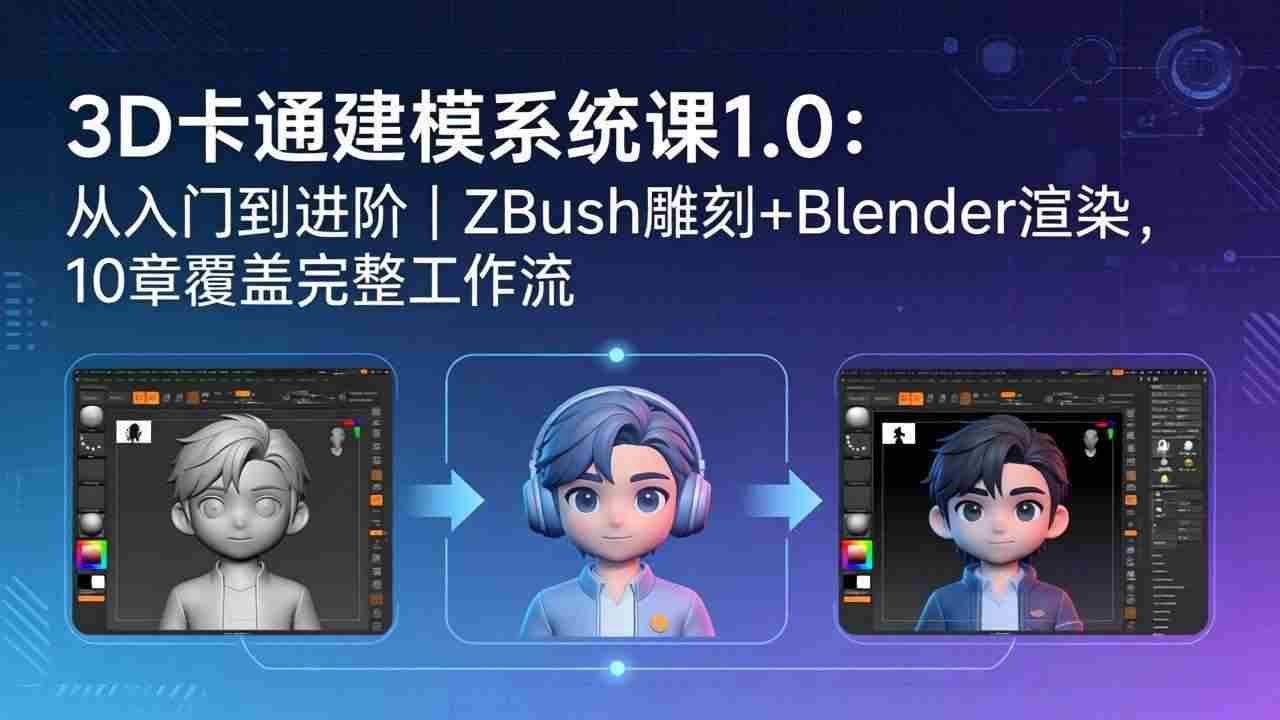 (18035期)3D卡通建模系统课1.0:从入门到进阶|ZBrush雕刻+Blender渲染,10章覆盖完整工作流
