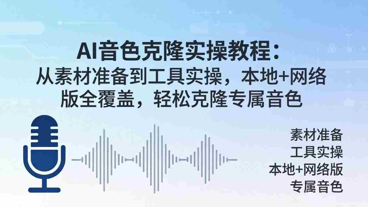 (18141期)AI音色克隆实操教程:从素材准备到工具实操,本地+网络版全覆盖,轻松克隆专属音色