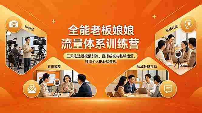 (18187期)全能老板娘流量体系训练营,三天吃透短视频引流、直播成交与私域运营,打造个人IP轻松变现