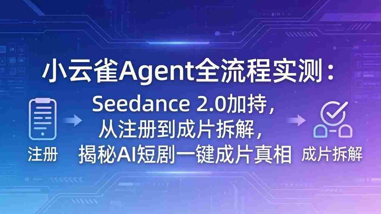 (18167期)小云雀Agent全流程实测:Seedance 2.0加持,从注册到成片拆解,揭秘AI短剧一键成片真相