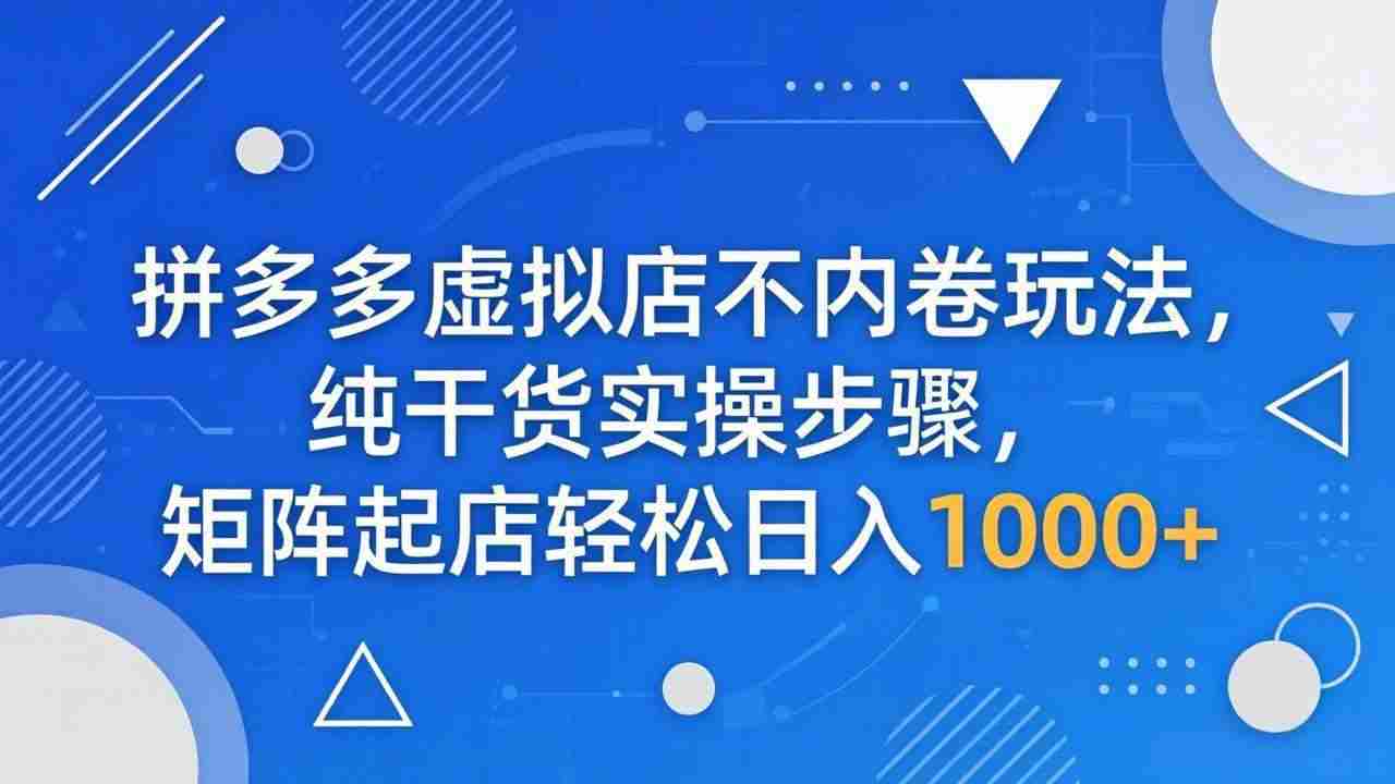 (18152期)拼多多虚拟店不内卷玩法,纯干货实操步骤,矩阵起店轻松日入 1000+